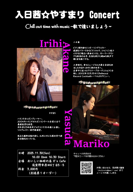 2025.9.8 しらいしりょうこ・入日茜コンサート ~見上げる。~情報UPしました
